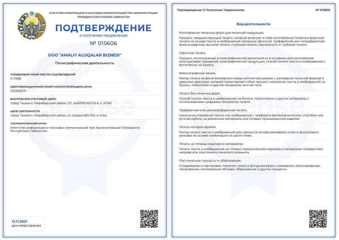 100015, ул. Шахрисабз 16 А, 4 - этаж, г. Ташкент, Республика Узбекистан |